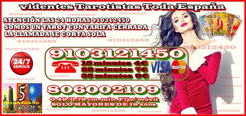 VIDENTES SIEMPRE DIRECTAS Y CLARAS SUPER OFERTAS EN TAROT Y VIDENCIA DESDE LOS 4€ 15min/ 7€ 25min/ 9€ 35min / 10€ 40min /13€ 50min / 15€ 60min / 17€ 70min / 20€ 90min prefijo fuera de España (00 34 )☎️ 910312450 LLAMANOS Y REPITE CONSULTA CON TAROTISTAS PROFESIONALES . LECTURAS GENERALES Y TIRADAS COMPLETAS DEL AMOR Y SENTIMIENTOS ,PENSAMIENTOS ☎️ 806002109. Coste min. 0,42/0,79 cm € min red fija/móvil. Servicio prestado por K.A.V. ap. C 164 cp. 46002 Valencia. Solo mayores 18 años Pruéb
